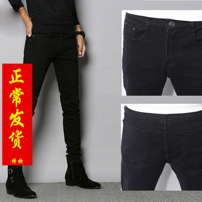 High-end black and gray jeans men's slim-fit straight-leg long pants 2022 summer elastic casual men's pants Korean version