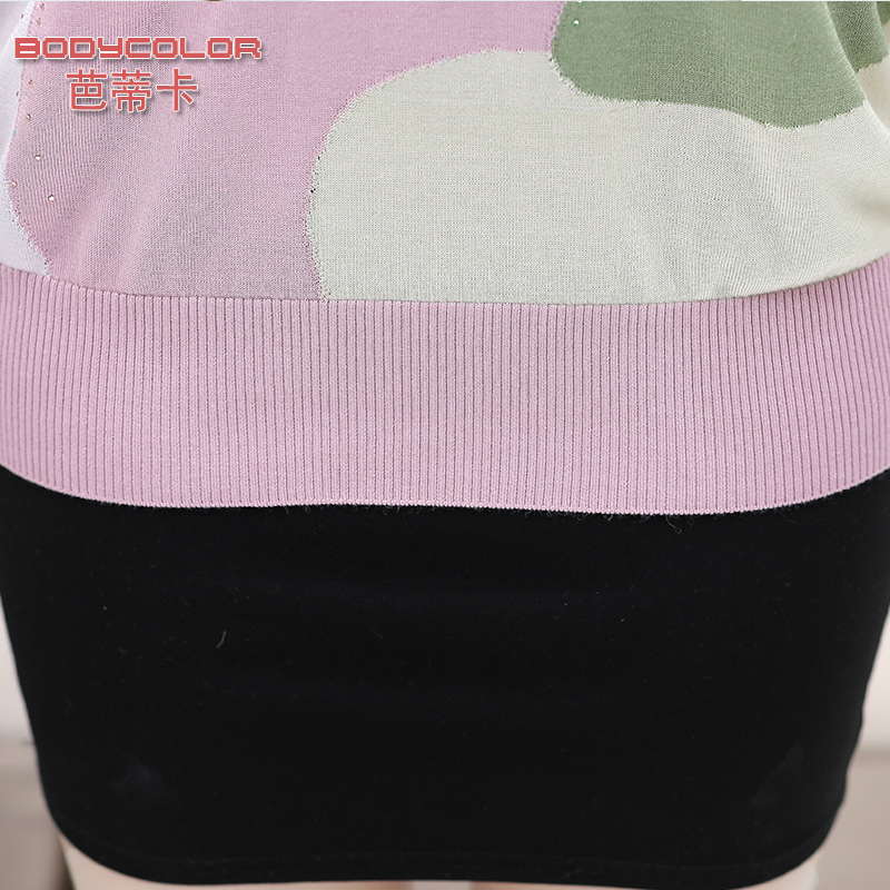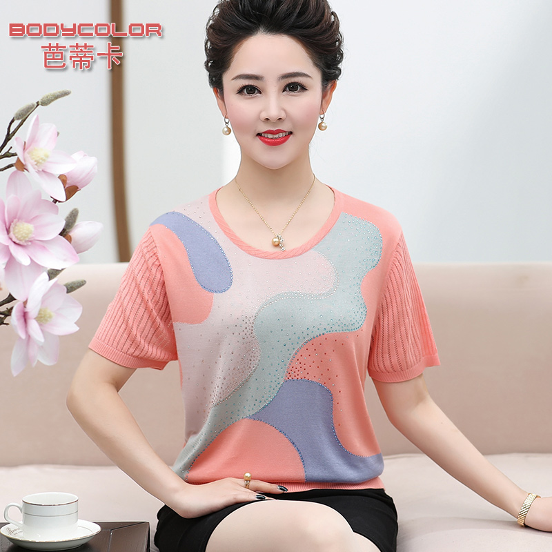 Foreign Pie Mother Summer Clothing Short Sleeve T-shirt Mid-Aged Female Knitwear 40-50-Year-Old Thin Section Loose Large Size Ice Silk Blouse
