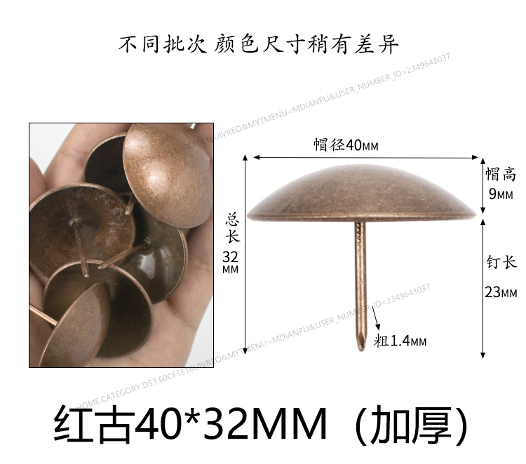 Red Gummy Nails Ancient Bronze Color Bubble Nail Bronze Nail Round Head Nail Sofa Hair Soft Bag Nail Head Nail Decorative Blister Nail Tulle Nails