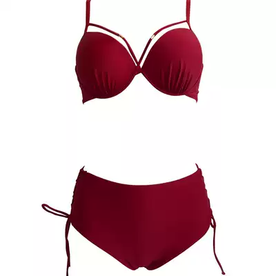 bikini swimsuit women's black red small breasts gather sexy three-point bikini three-piece catwalk swimsuit