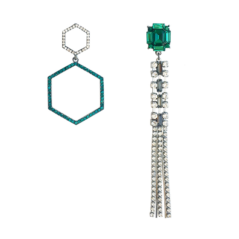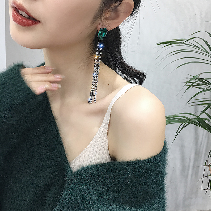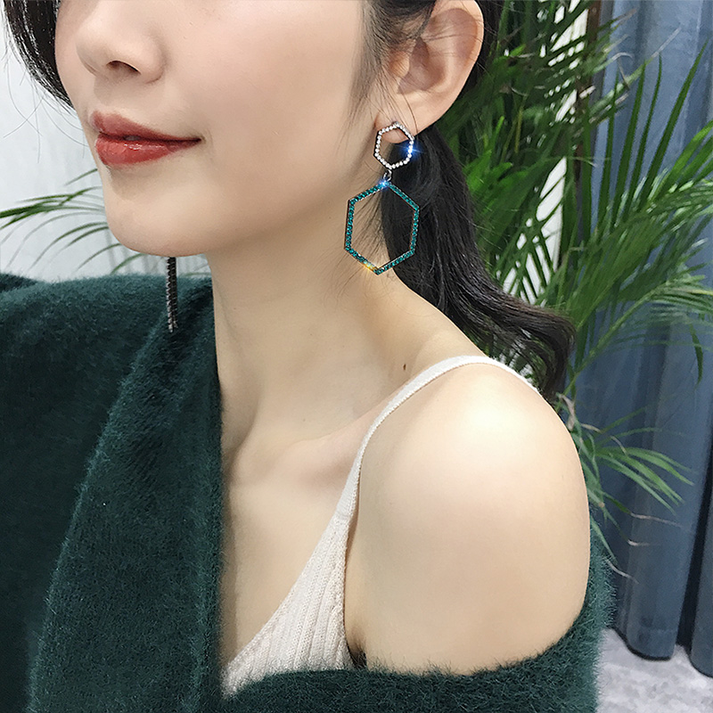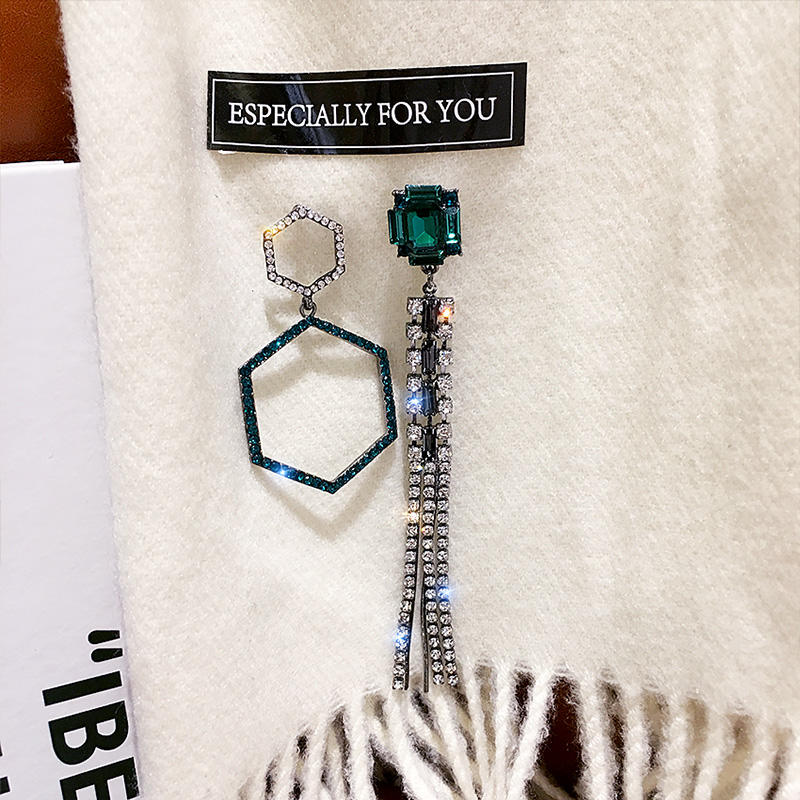 925 Silver Needle asymmetrical full of long - drainage stream Suearrings female Korean long - edition geometric pendant ear needle