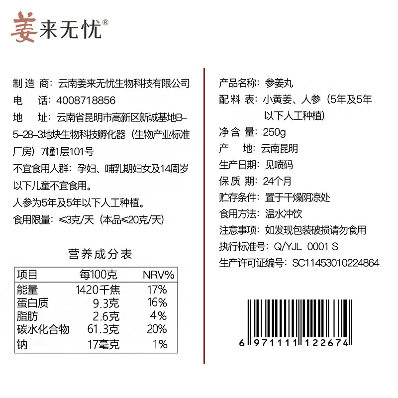Buy 4 to give 1 ginger to worry-free ginseng pill ginger to worry-free Red ginseng ginger pill cooked ginger pill original point heat source ginseng pill 250g
