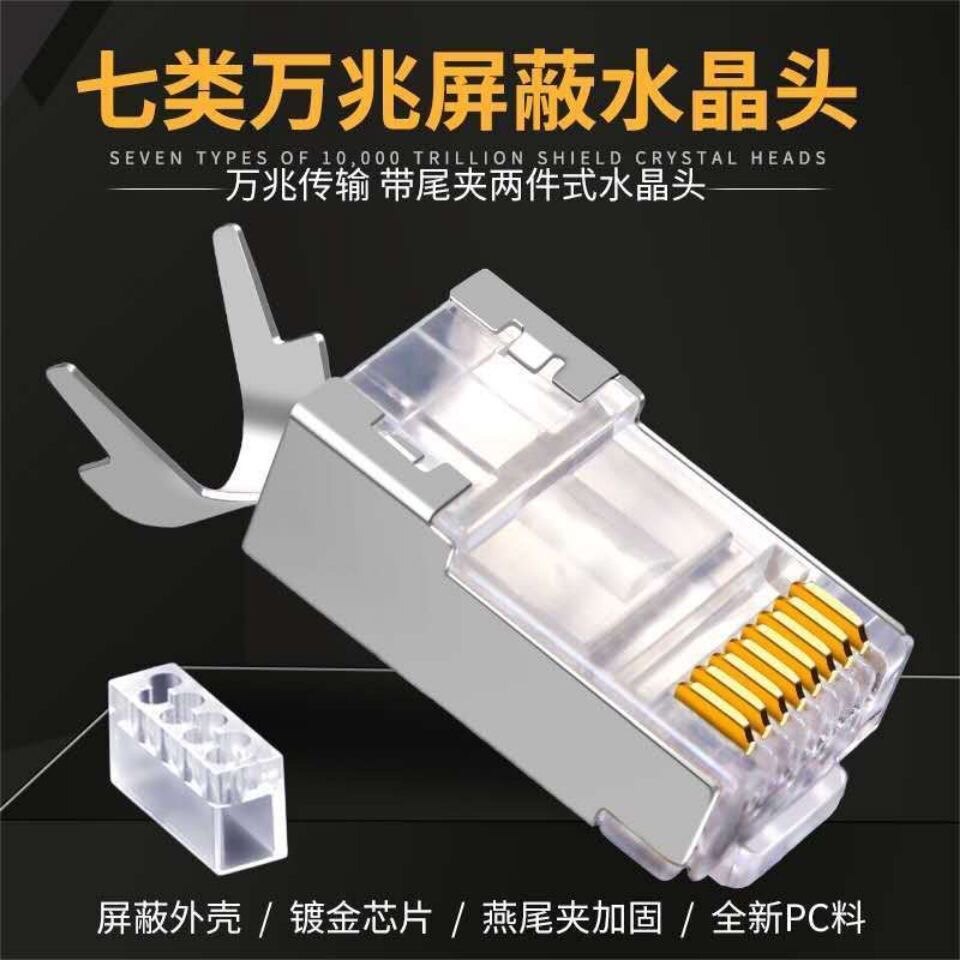 7 seven types of network cable crystal head cat7 ten thousand gigabit network double shielding super six cat6a gigabit computer rj45 connector