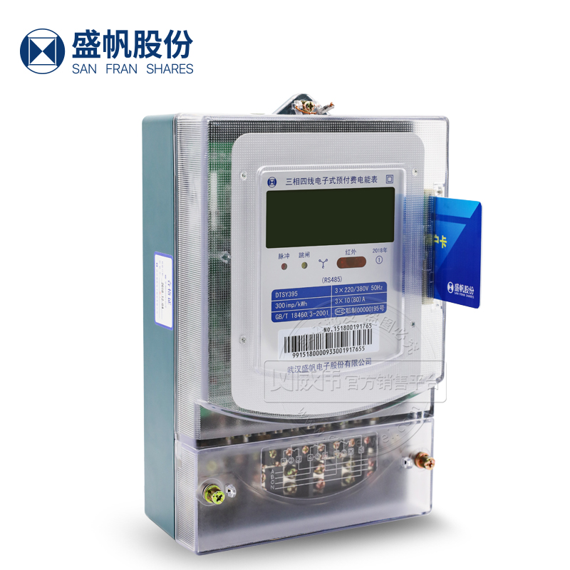 Wuhan Shengfan meter DTSY395 prepaid meter Three-phase four-wire IC card meter Class 1 plug-in card meter