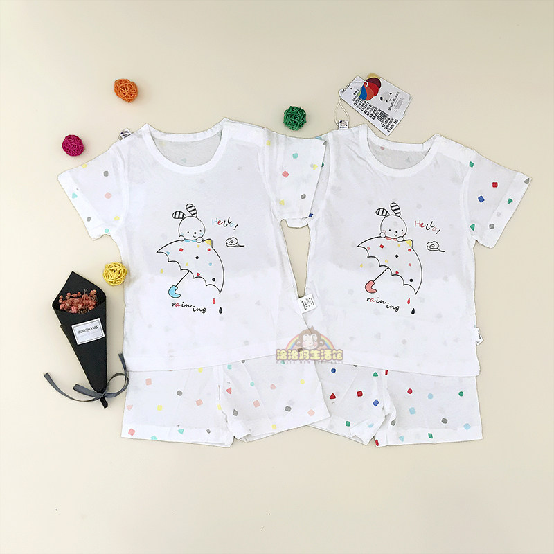 Baby Beile Baby Summer Dress Thin Cotton Boys and Girls Icy Cotton Short-sleeved Suit Boys and Girls Baby Homewear Summer