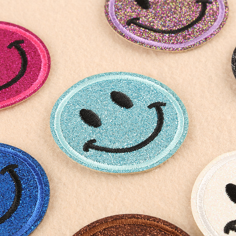 Cute bright pink expression smiley cartoon cloth stickers children's clothes pants bag decoration embroidery hole repair patch stickers