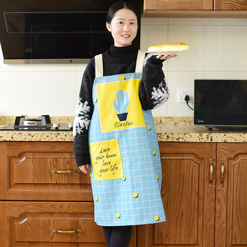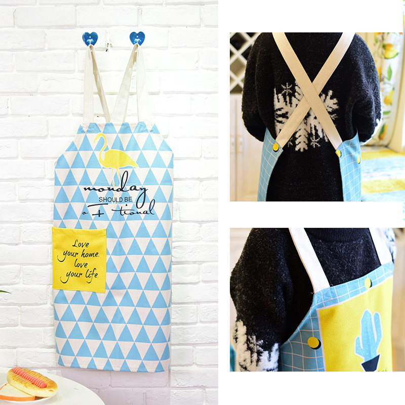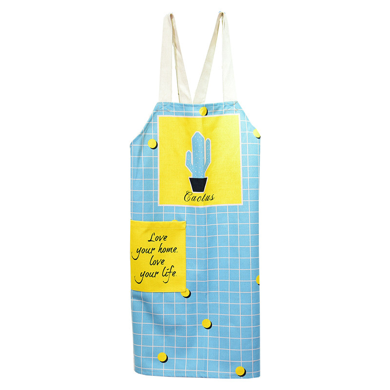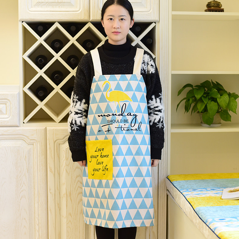 Nordic Fresh Cotton Linen Lovers Apron Geometric Drawing Apron Kitchenette Cooking Without Cuff Anti-Fouling Skirt Workwear Hood Clothing