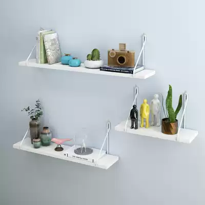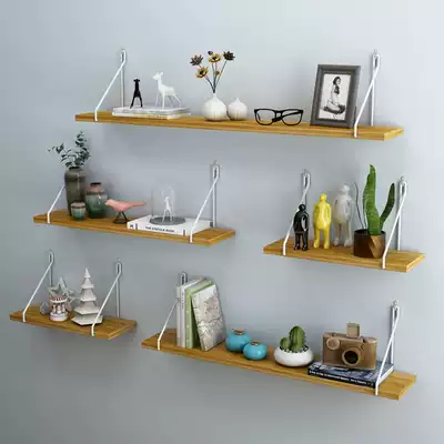Punch-free wall shelf Nordic Wall wooden shelf TV background wall machine upper box hanging wall decoration partition