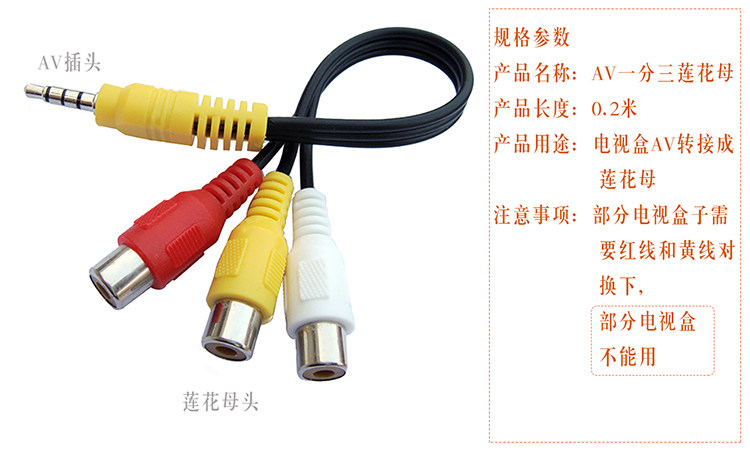One point three AV cable TV upper box 3 5AV to lotus mother red, yellow and white accent video conversion cable