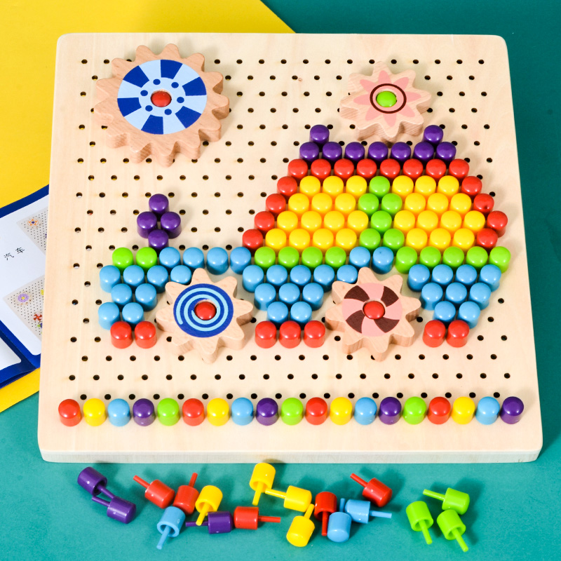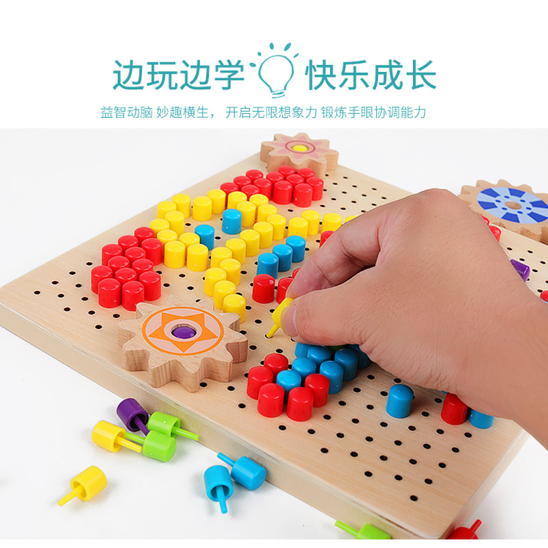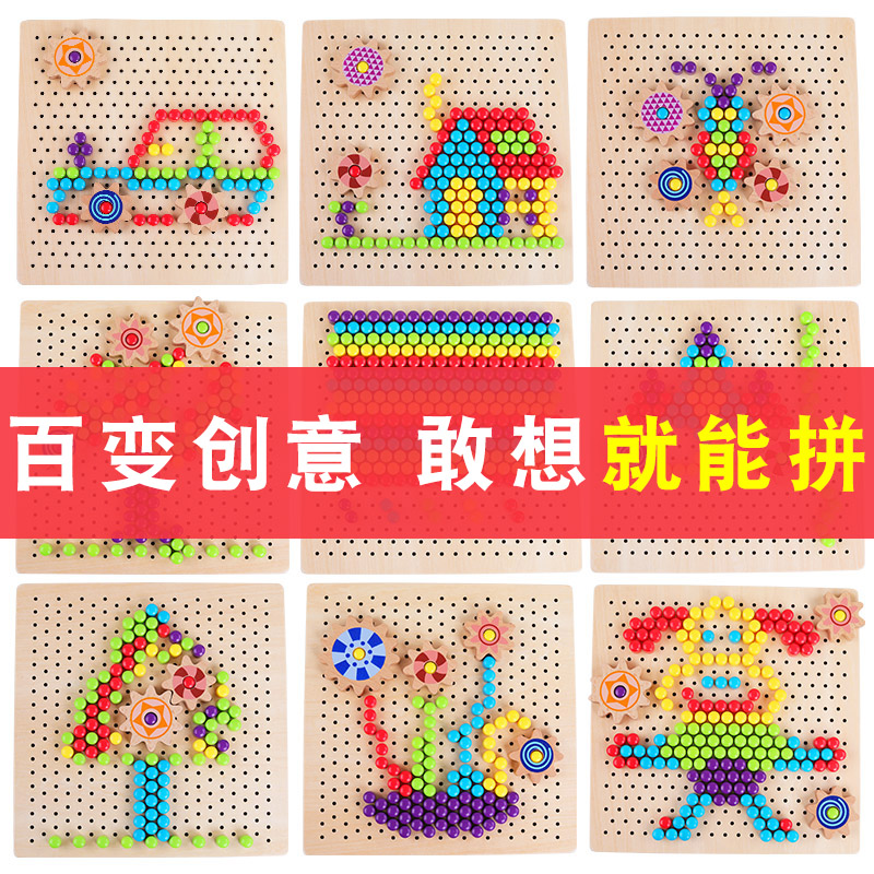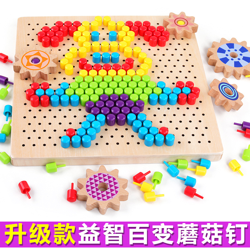Intelligence variety mushroom stud puzzle toy large particle puzzle board Children's creative puzzle meticulous action training