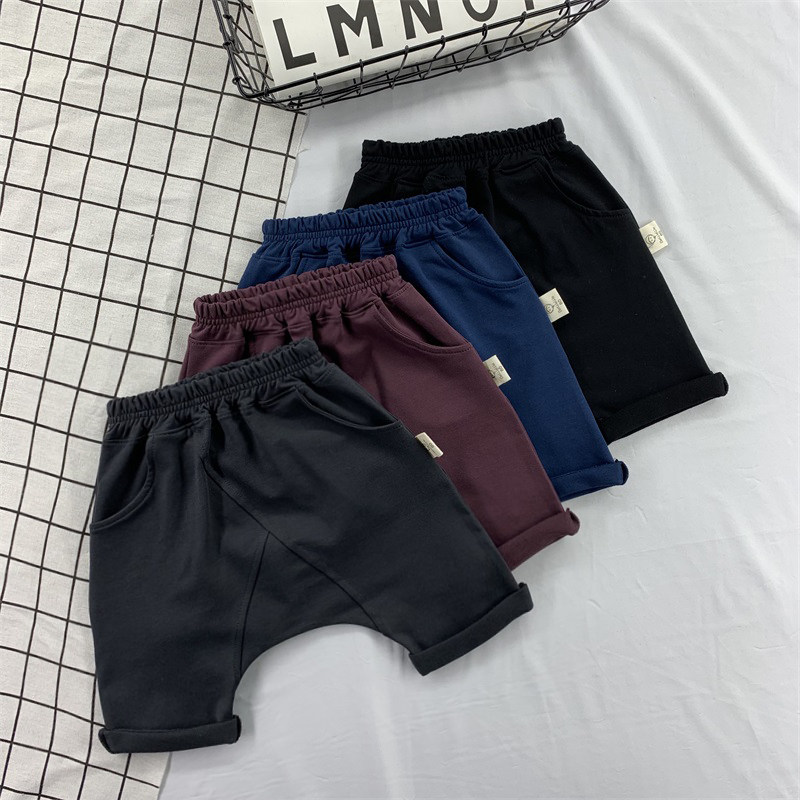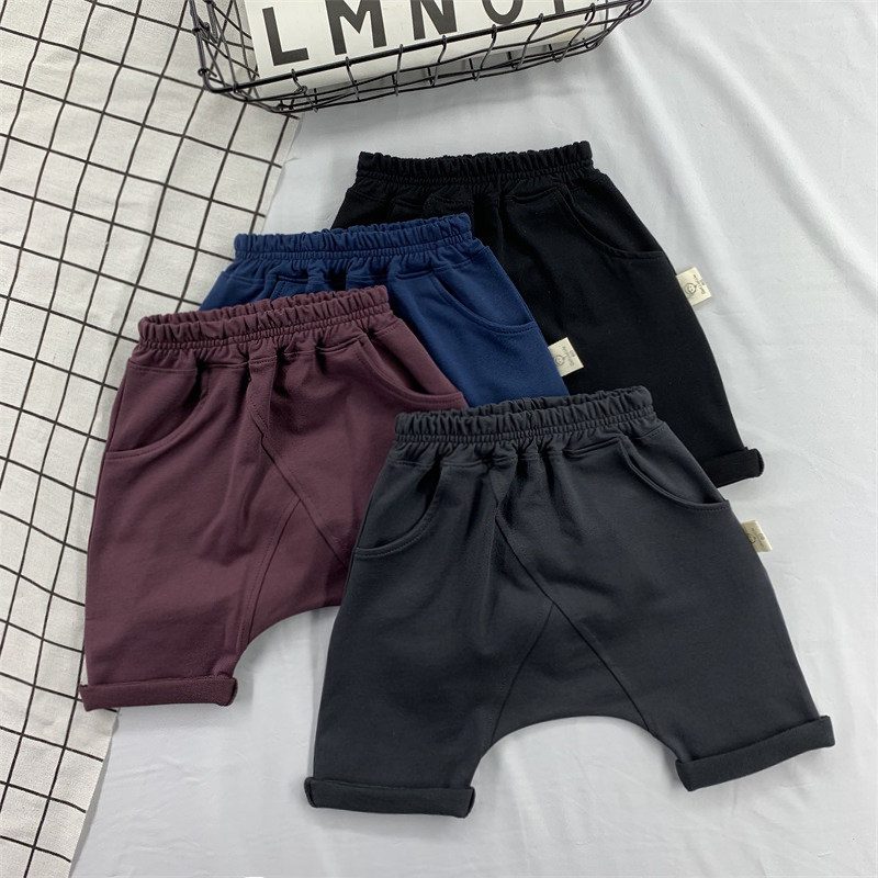Summer new children Harun shorts boy pure cotton loose 50% pants kiddie baby casual big crotch seven pant pants