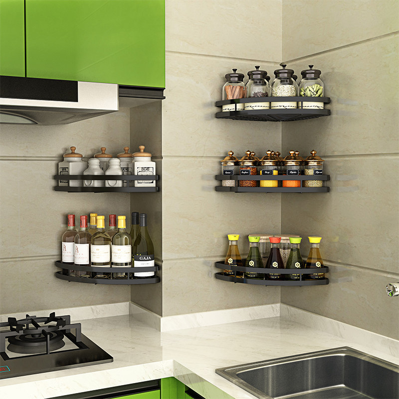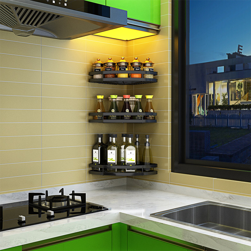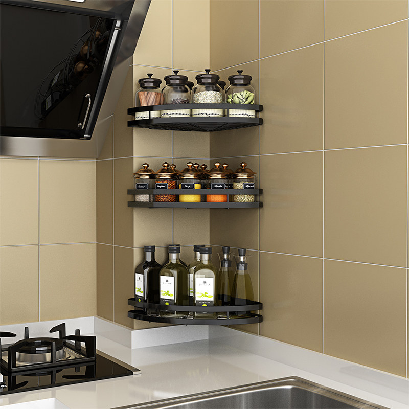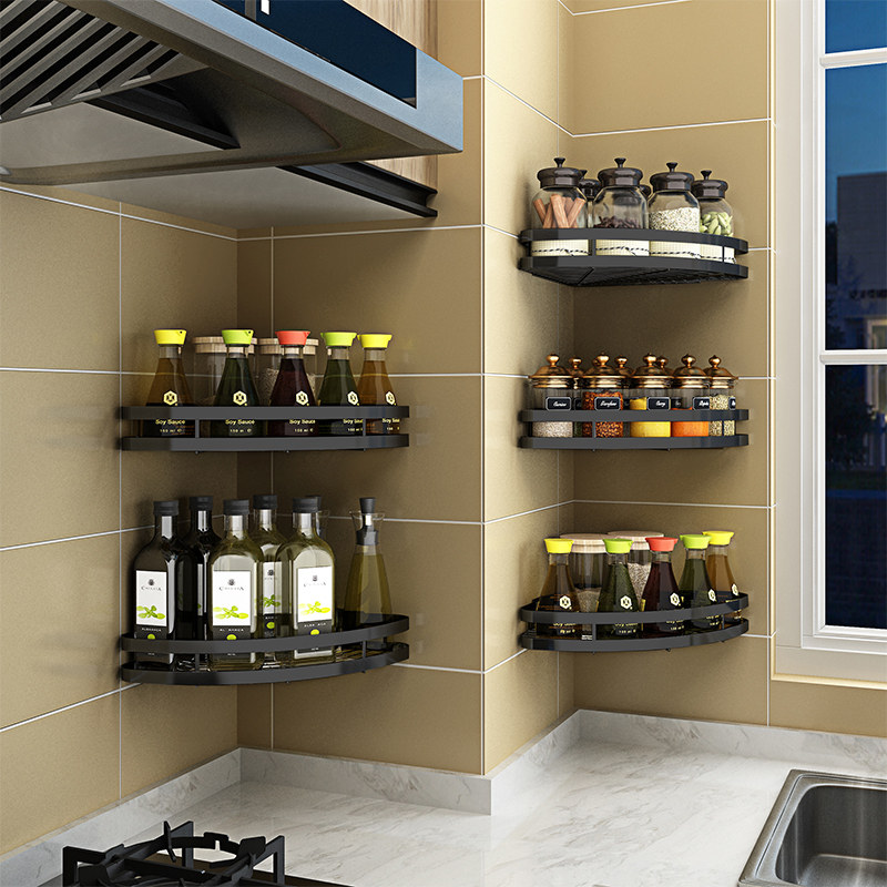 Stainless Steel Kitchen Black Salt Sugar Seasoning Jar Shelf Wall Corner Free perforated wall-mounted multilayer Oil Salt sauce Vinegar contained