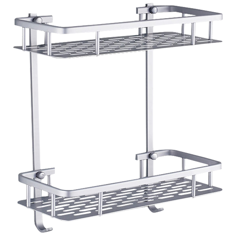 Bright light aluminium double layer with hook corner rack (free of punch) bright light aluminium double layer with hook shelve (perforated) matt aluminium soap mesh (free of punch)