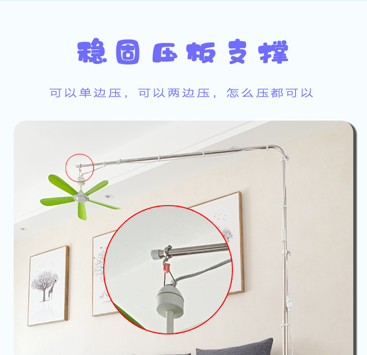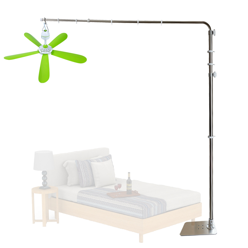 New floor-to-ground bracket hanging middle-tube small ceiling fan extended horizontal rod plus rough dorm beds hanging mosquito net fixed shelf