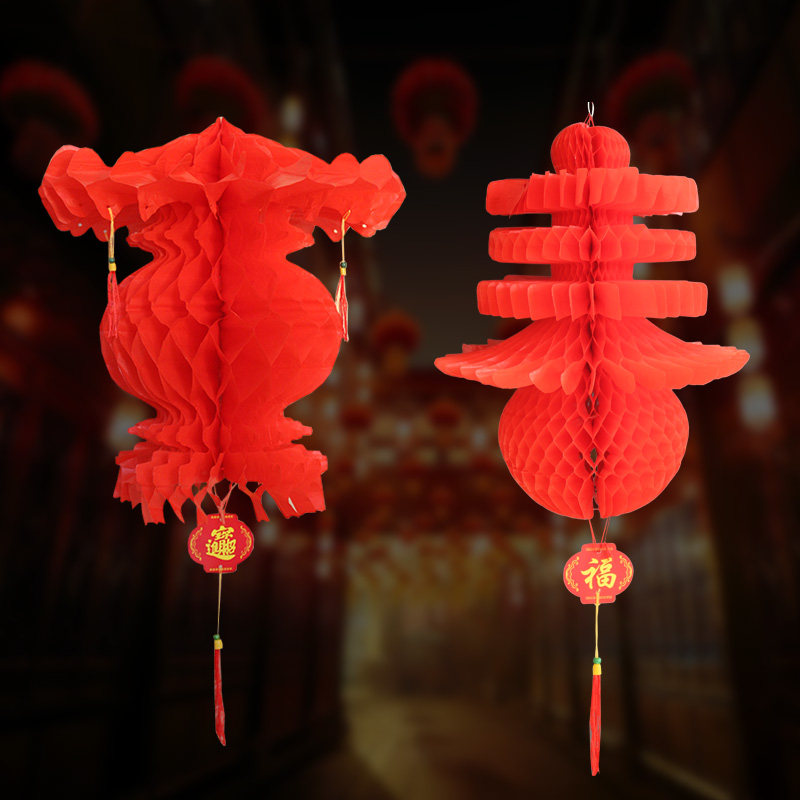 New Year's Day Red Color New Year Decoration Wedding Supplies Festival Opening Chunfu Word Series Small Plastic Paper Lantern Ornaments