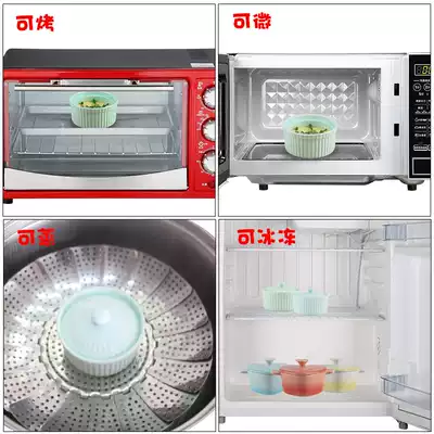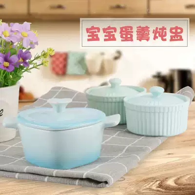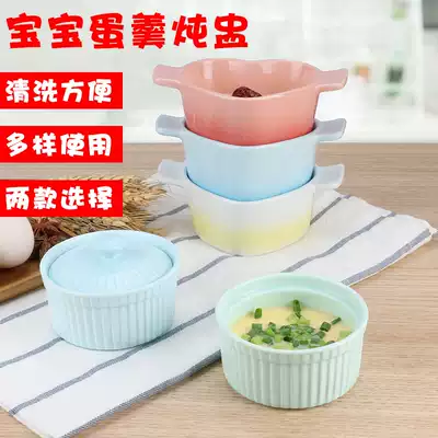 Baby steamed egg bowl high temperature resistant small baking bowl Baby home ceramic binaural with lid Dessert steamed egg soup stew cup