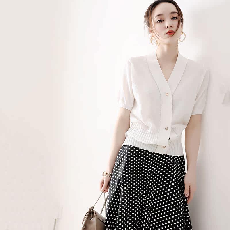 Day-series women's clothing Summer 100 hitch BLING water drill dotted with tiny foam sleeves hem Candy Color Cardiovert