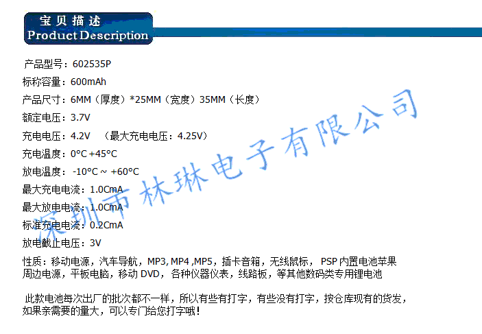 602535 battery 3 7V 600mah with protection plate 062535 mobile phone tablet polymer lithium battery