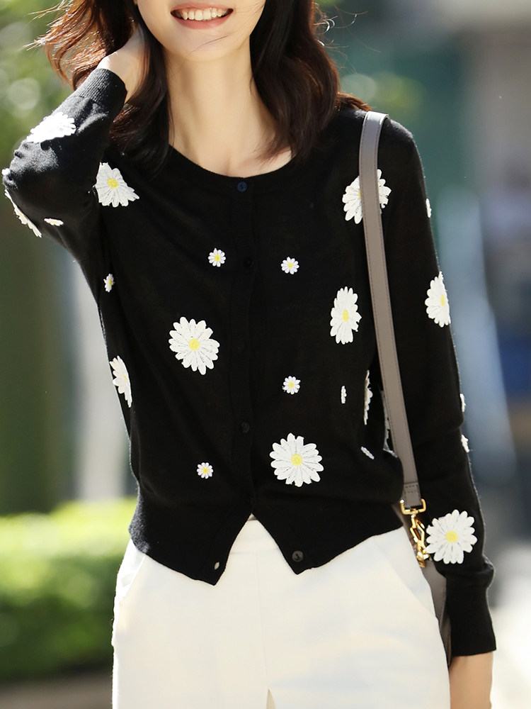 Daisy knitted sweater coat girl 2022 new small gas star same early spring thin coat