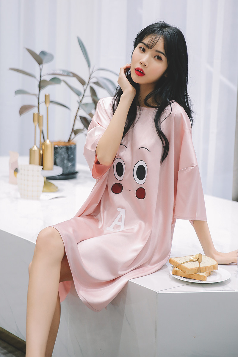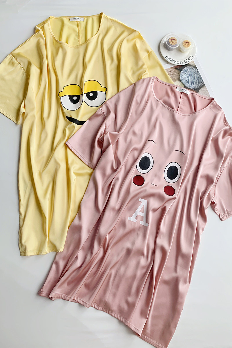 2022 Summer new sleepwear women's eyes ice silk sleeping dress Korean version loose and playful cute home wear can be worn out
