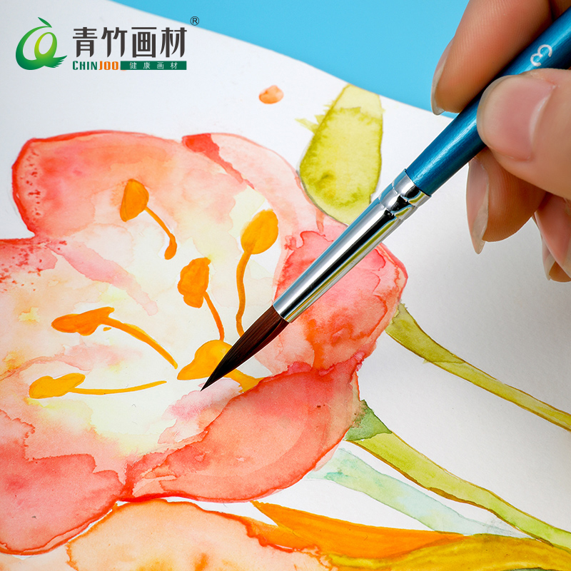 Green Bamboo Drawing Material Watercolor Painting Pen 6 Clothes Imported Nylon Hair Round Head Water Color Pen Water Color Pen Propylene Paint Hook Line Pen Beginners Fine Art Painting With Pen Press String Can Pair Thread Coix Seed Plastering