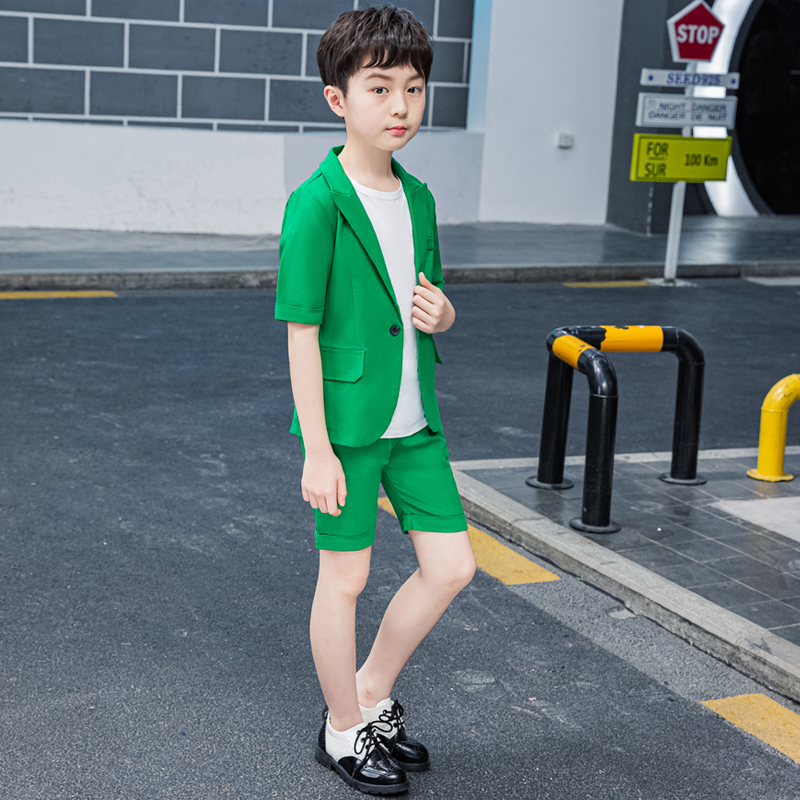 Gray three-piece set (coat shorts white T-shirt) gray two-piece set (coat shorts) green three-piece set (coat shorts white T-shirt) green three-piece set (coat shorts Black