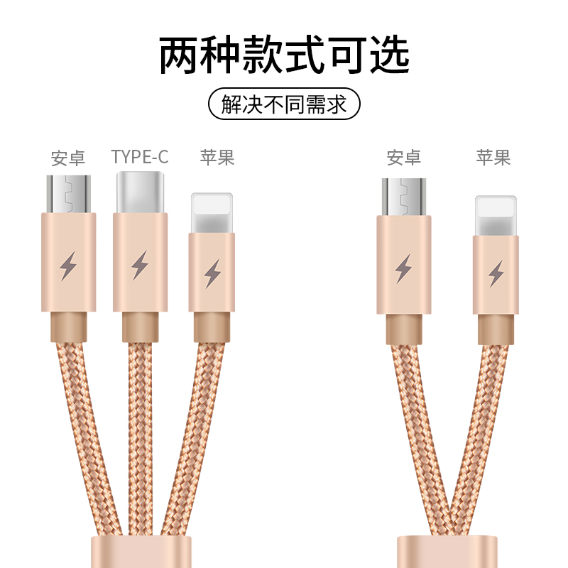Tafiq three-in-one data line Apple Android charging line one drag triple type-c multi-function universal fast charging vehicle high speed applicable oppo Huawei vivo Xiaomi mobile phone