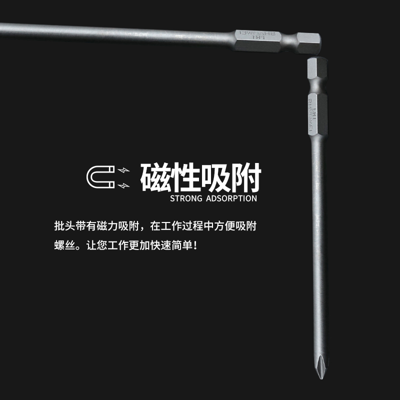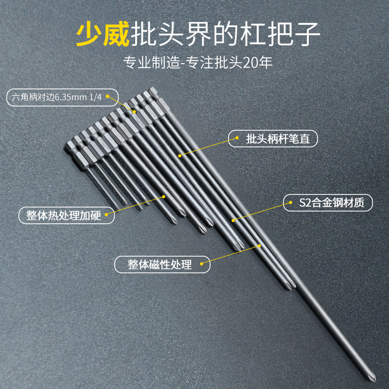 Lengthened cross batch head Shaowei imported S2 steel special length 300 electric magnetic screwdriver head pneumatic screwdriver set