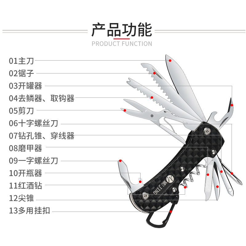 Multifunctional Wilderness Courtson Combination Carry-on Tool Knife Outdoor Vehicular Knife Folding Portable Multipurpose Small Knife