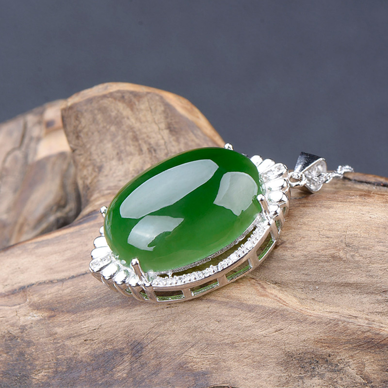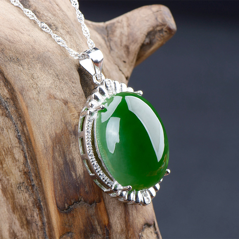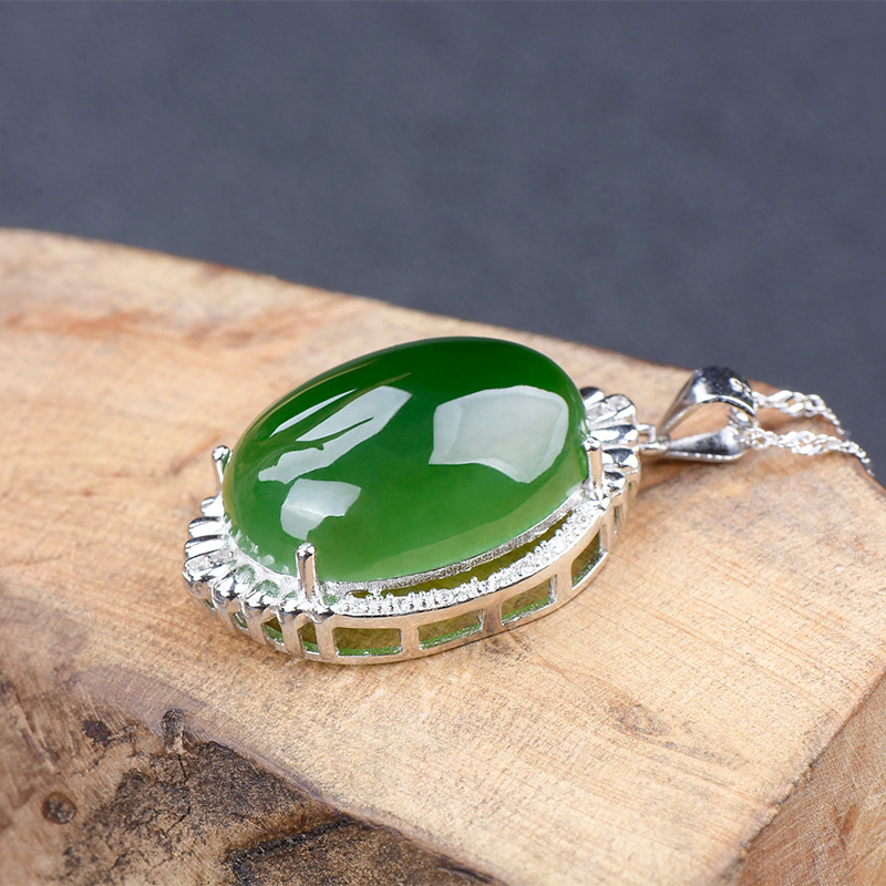 Xinjiang and Tian Beyyu spinach green egg noodles pure silver inlaid pendant retro elegant atmosphere female money chain hanging decoration