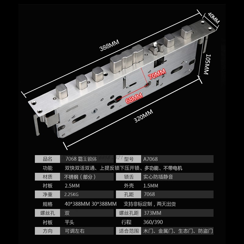 Overlord 7068 fingerprint lock lock body double fast double live anti-theft stainless steel smart lock 7568 30 40388 lock body