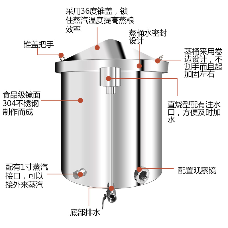 Brewing equipment Steamer steamer rice bucket Steamer grain distiller External steam machine Boiler flip machine 304 stainless steel
