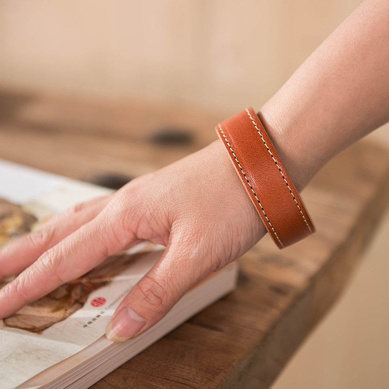Tannic leather American retro lovers bracelet pure handmade cow leather bracelet wide minimalist opening