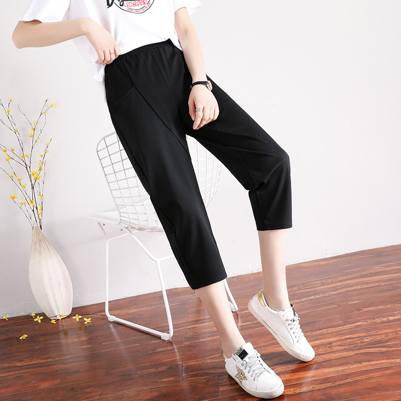 Large size cropped pants women's summer thin section fat mm loose slim pants Korean version of the all-match straight casual harem pants