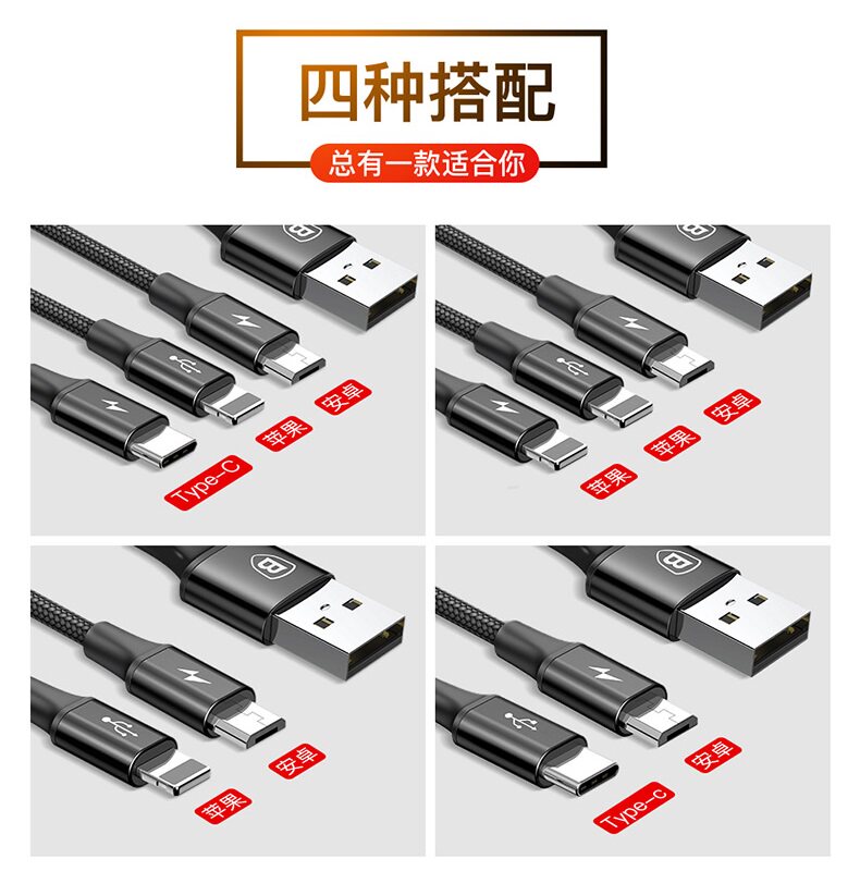 One-to-two data cable three-in-one charging cable type-c car cable suitable for Huawei p20 Apple Android mobile phone fast charging three-head car iphone8x car USB car charging cable universal