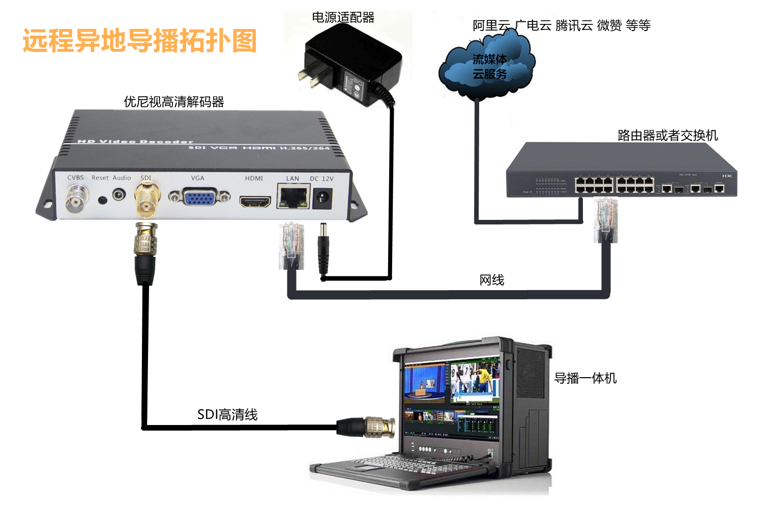 SDI HD Video Decoder H.265 Network Stream Receiver Mobile Phone RTMP Stream Receiving Server Decoding