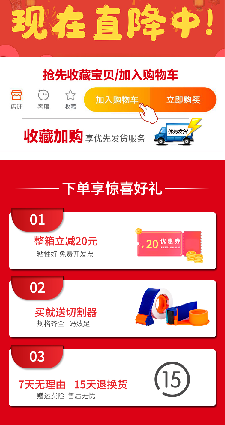 Green Hui transparent tape Large volume express packing 5 5cm4 5cm4 2 6cm5 large size whole box wholesale high viscosity sealing tape Taobao special packaging sealing tape tape can be customized