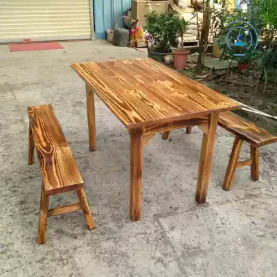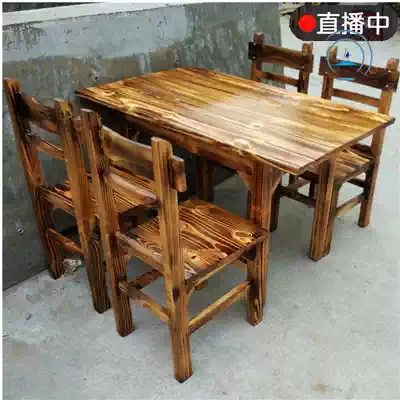 Antique charcoal-burning wood restaurant Hotel snack bar Hotel dining room Hot pot noodle restaurant Fire-burning solid wood fast food table and chair combination
