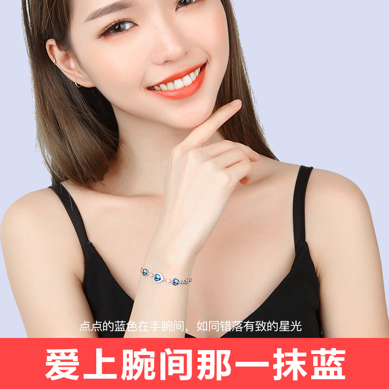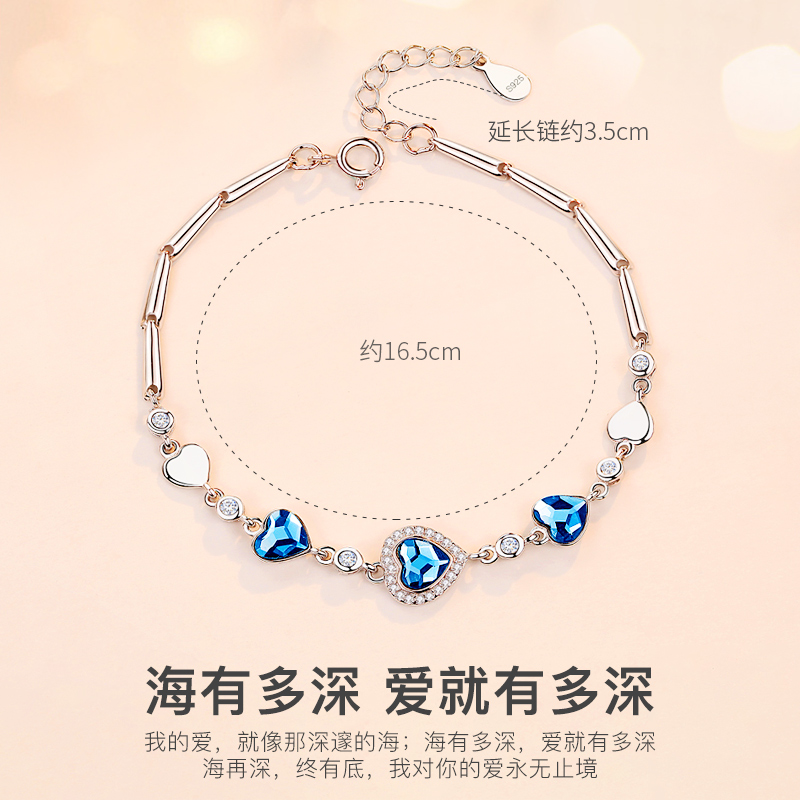 New Blue Crystal Ocean Hearts Handmade Girls pure silver ornament Jane Girlfriends Gift Lettering with little crowdsourced design
