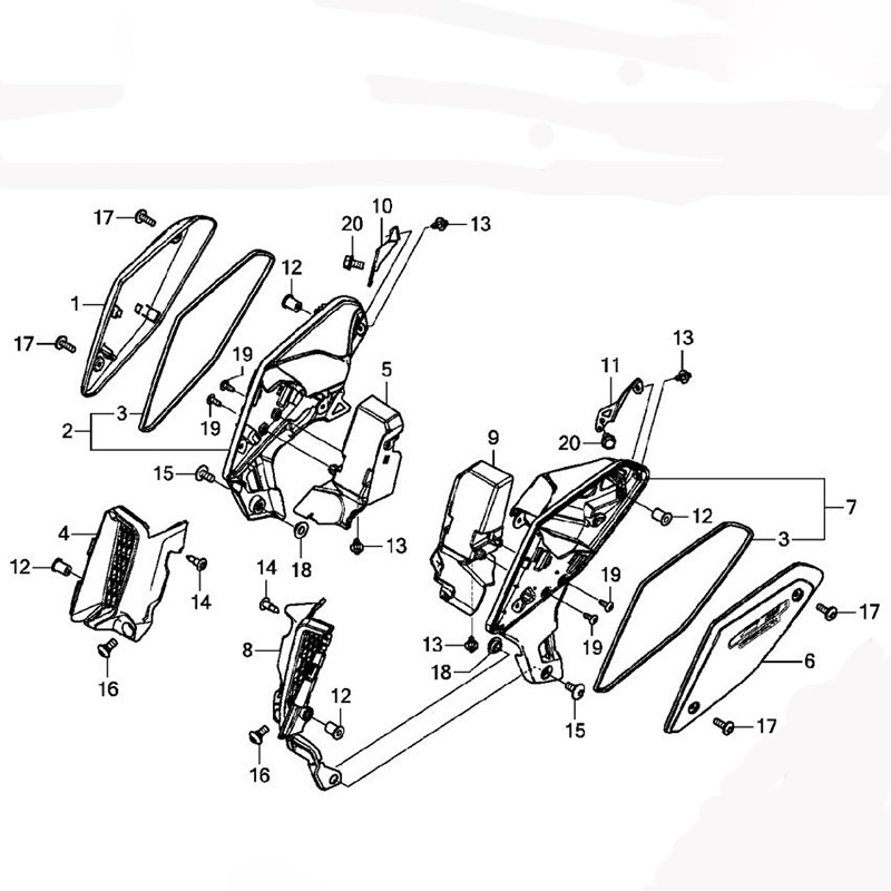 Figure 1 silver water tank sideboard right Chart 6 silver water tank sideboard left figure 2 lining plate right figure 7 lining plate left picture No. 4 ventilation mesh plate right Figure 8 Ventilation net board on the left figure 5 through