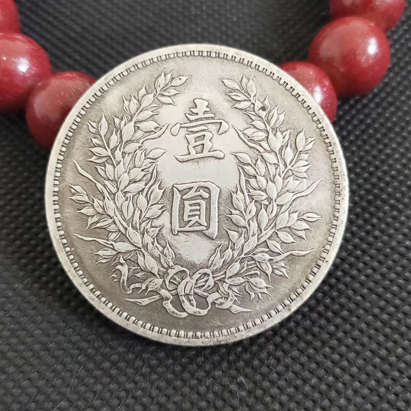 Silver dollar silver coin collection of the Republic of China three years big head bilateral silver dollar one round old packaging copper plate white copper silver dollar