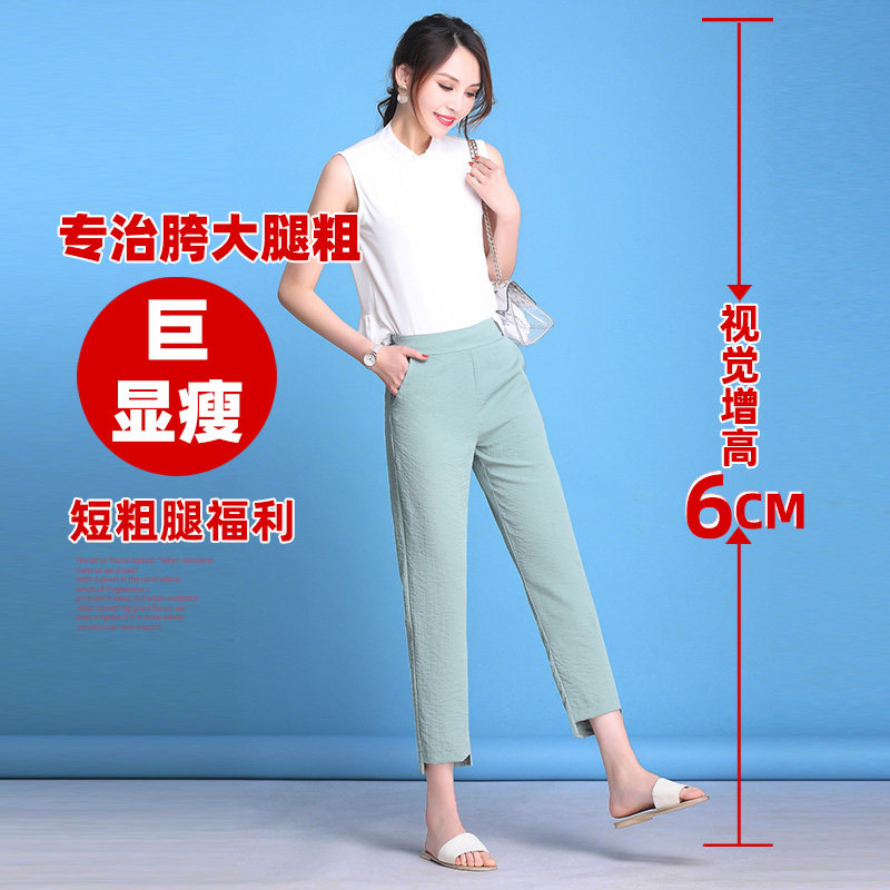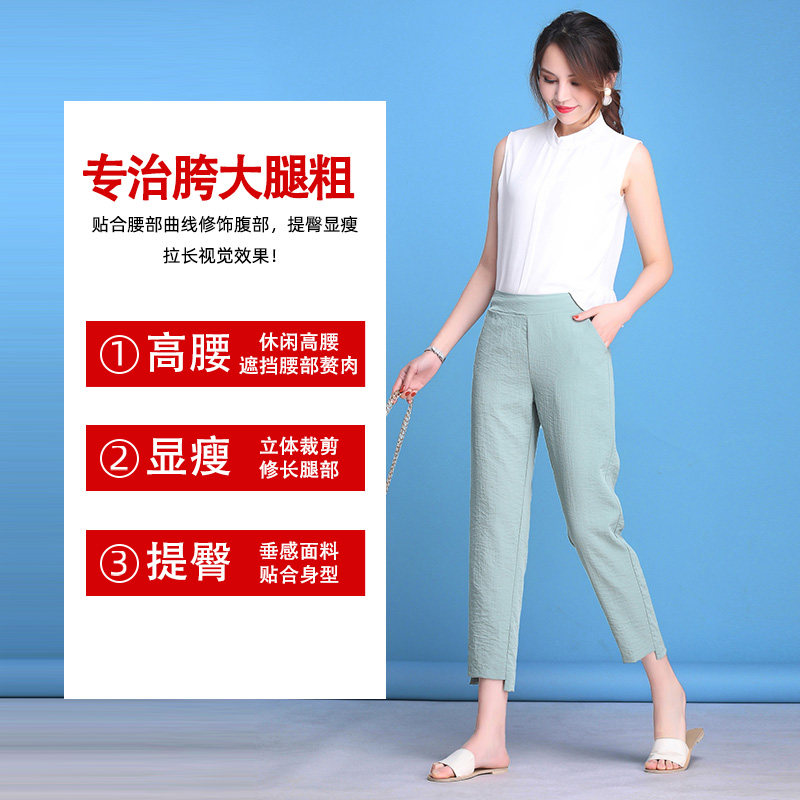 Ice silk fat mm thin pants cotton and linen harem pants women's pear-shaped figure high waist loose thin section large size nine-point pants