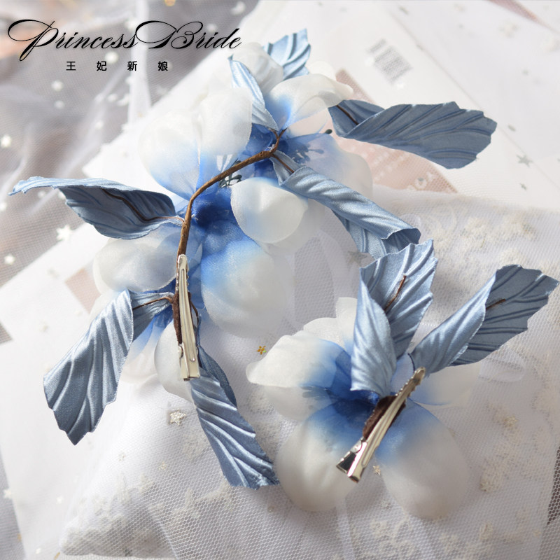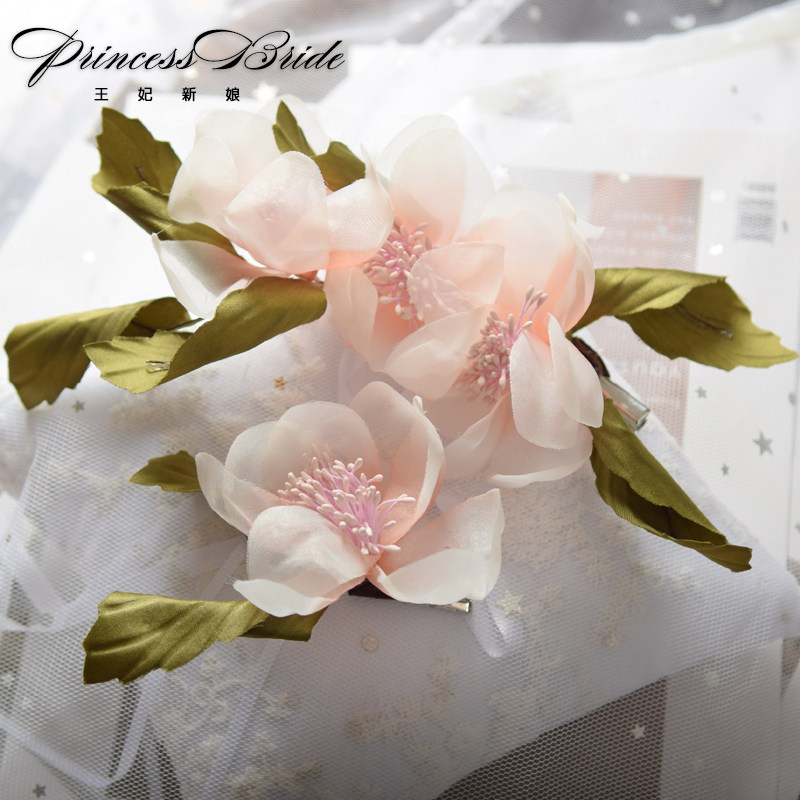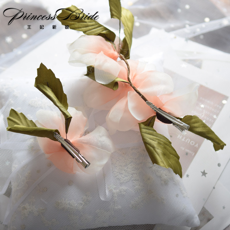 Princess bride's new handmade silk yarn flower edge clip hair accessories bride wedding and makeup headdress modeling photo accessories
