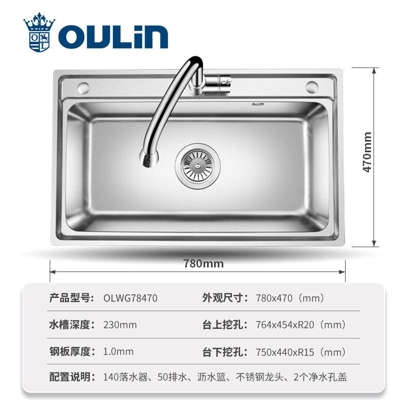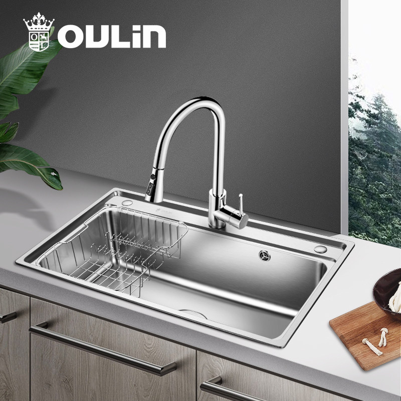 Ou Lin sink single tank set kitchen 304 stainless steel dishwashing basin dishwashing sink large single sink sink sink
