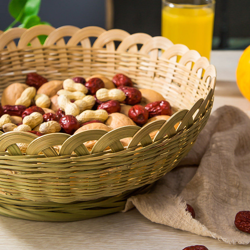 Bamboo Forest Bamboo Fruit Basket Creative Living Room Snack Dried Fruit Storage Basket Creative Handmade Bamboo Craft Gift Decoration