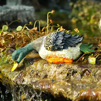 Simulation cute water-drinking duck resin animal ornaments Villa garden courtyard fish pond pool decorations Landscaping sculpture