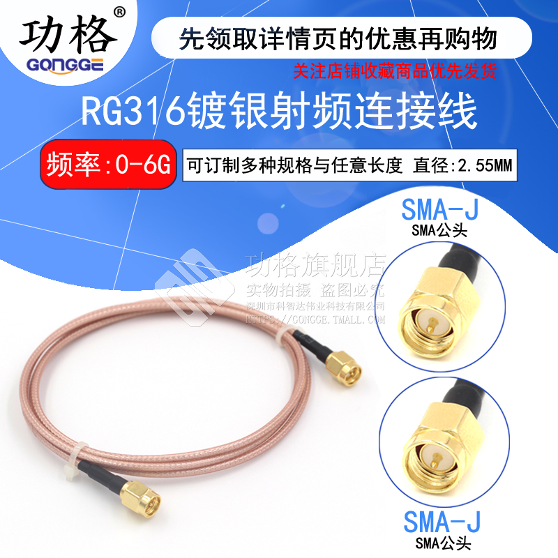 Gongge RG316 silver plated RF cable SMA-JJ adapter cable SMA dual male jumper antenna extension cable