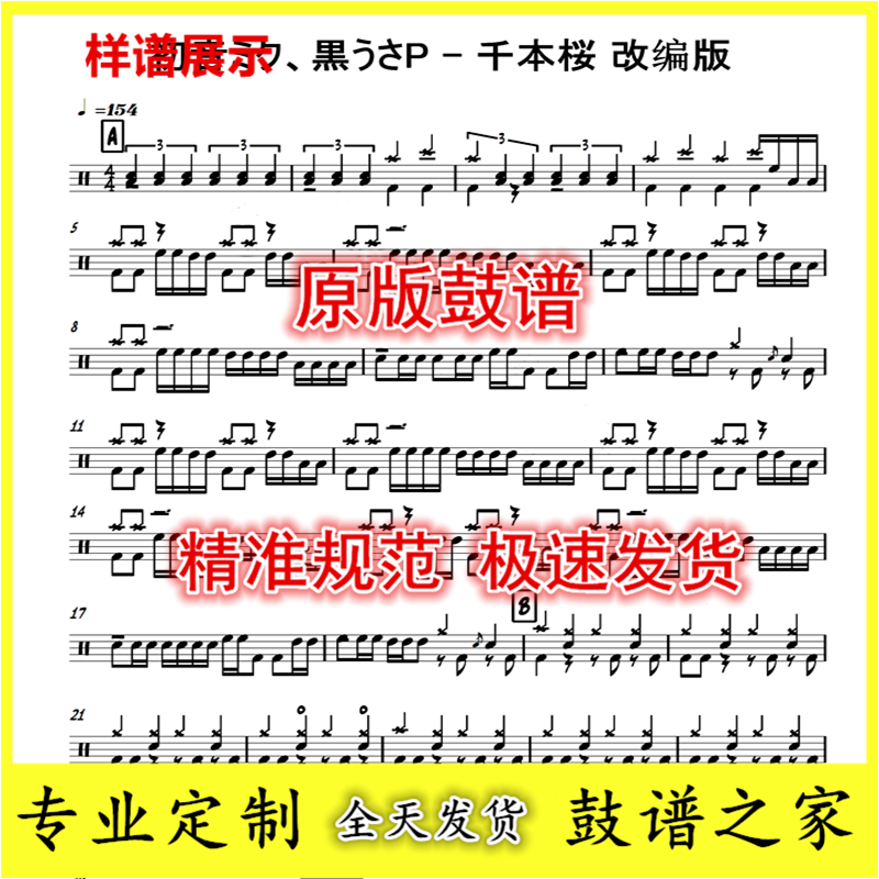 Hatsune Miku Kuro うさP - Senbon Cherry Drum Kit Jazz Drum Score