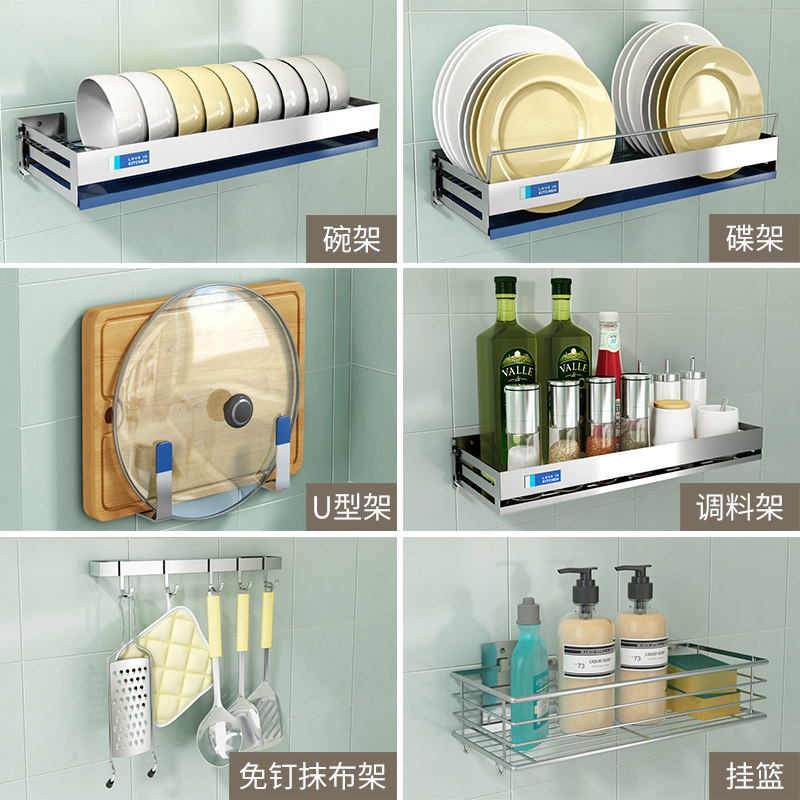 Nail-free upgrade knife holder (with chopstick cage) 3-layer pot cover holder non-perforated towel holder 30 long non-perforated dish holder combination 5 combination 7 non-perforated knife holder non-perforated pot cover holder non-perforated