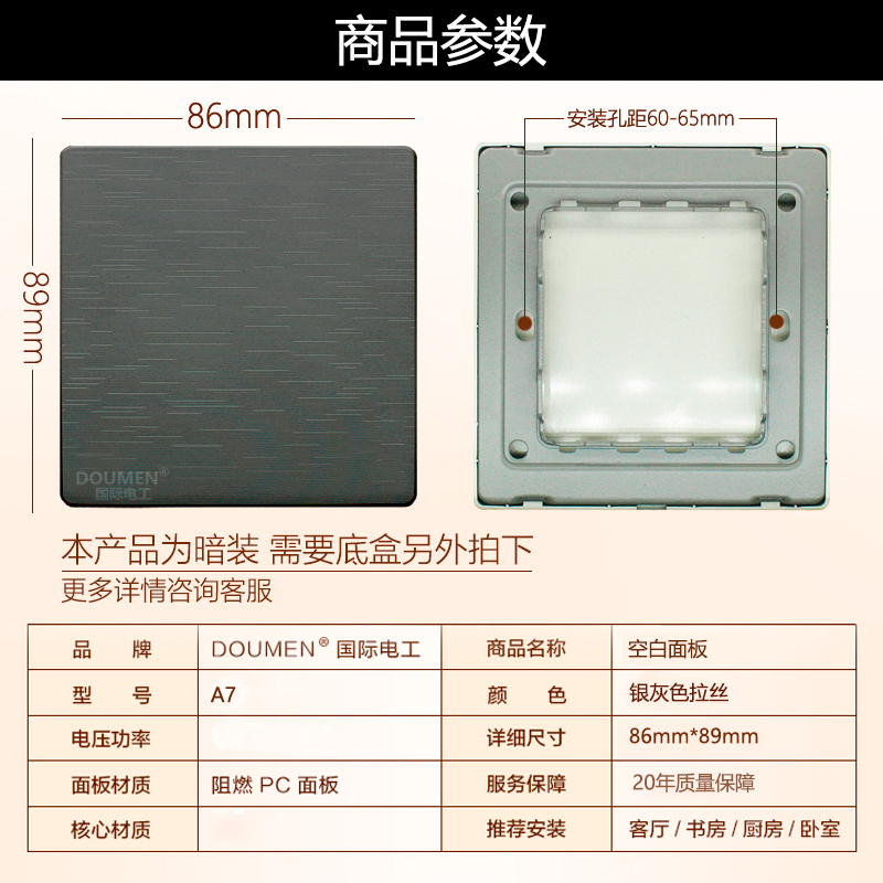 International electrician 86 type silver gray brushed concealed switch socket panel package blank surface plate cover plate whiteboard